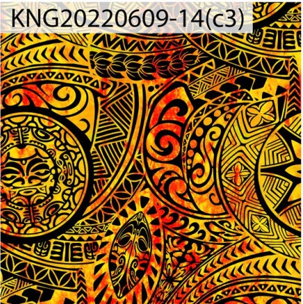 GTEX Collection KNG - Polynesian Fabric -Digital Tribal Tattoo, Island Fabric - Sold by the Yard - FDY Peachskin Fabric 58" - New Design