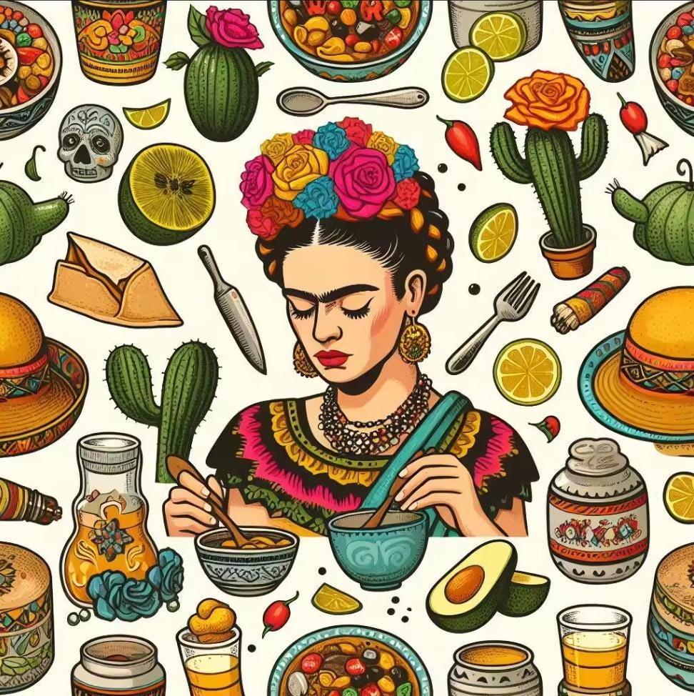 Designs: Mexican heritage themes – Frida Kahlo, tattoo art, avocados, sombreros, and fiesta motifs