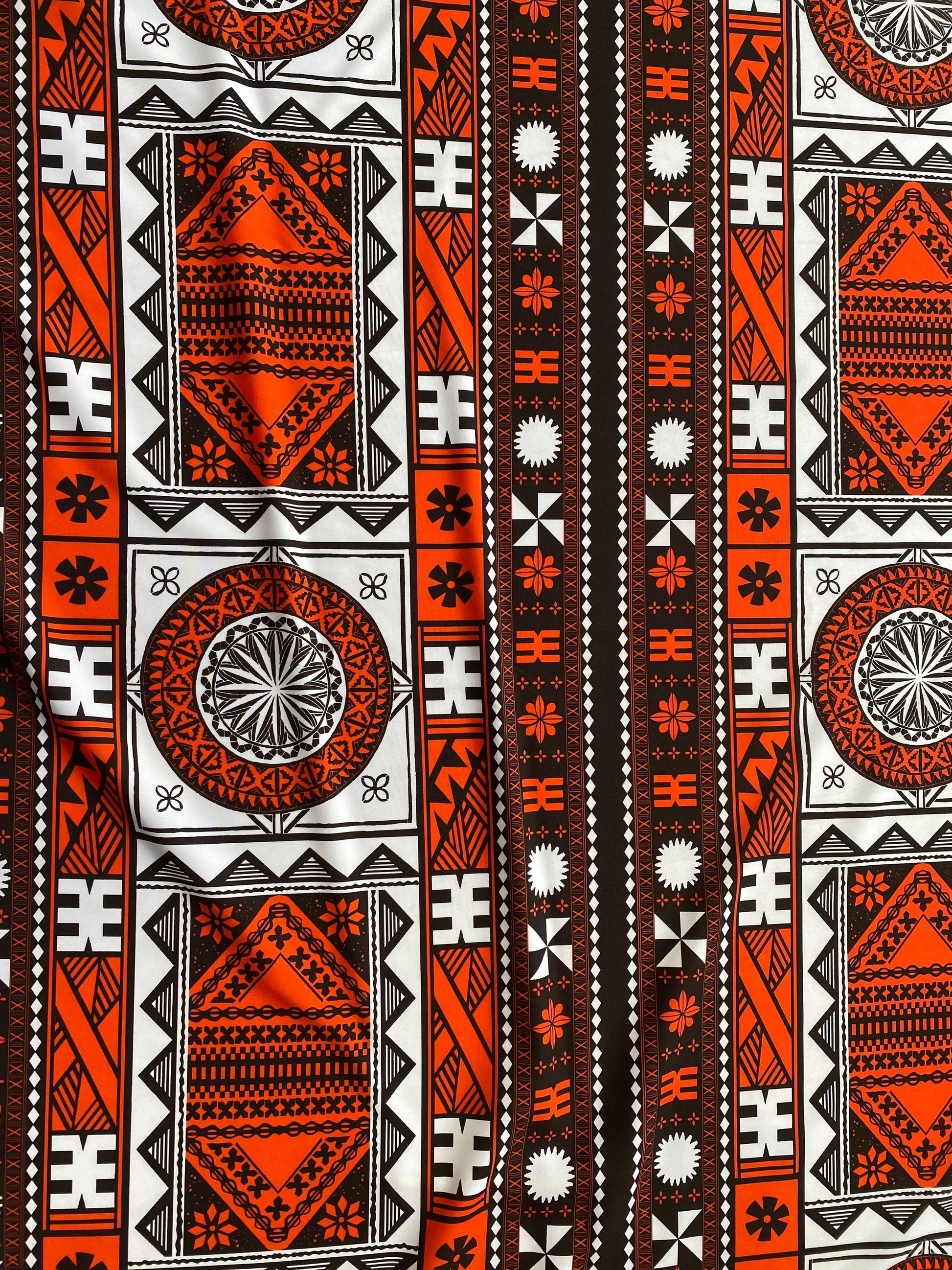 New Fijian Tapa Block Print Fabric - Polynesian Design - Peach Skin Fabric- by the Yard 58" Wide - Fiji Material |Solid Medium Satin Fabric, Charmeuse, Costume, Lining, Décor, Apparel & Fashion Fabric | Gtex Fabrics