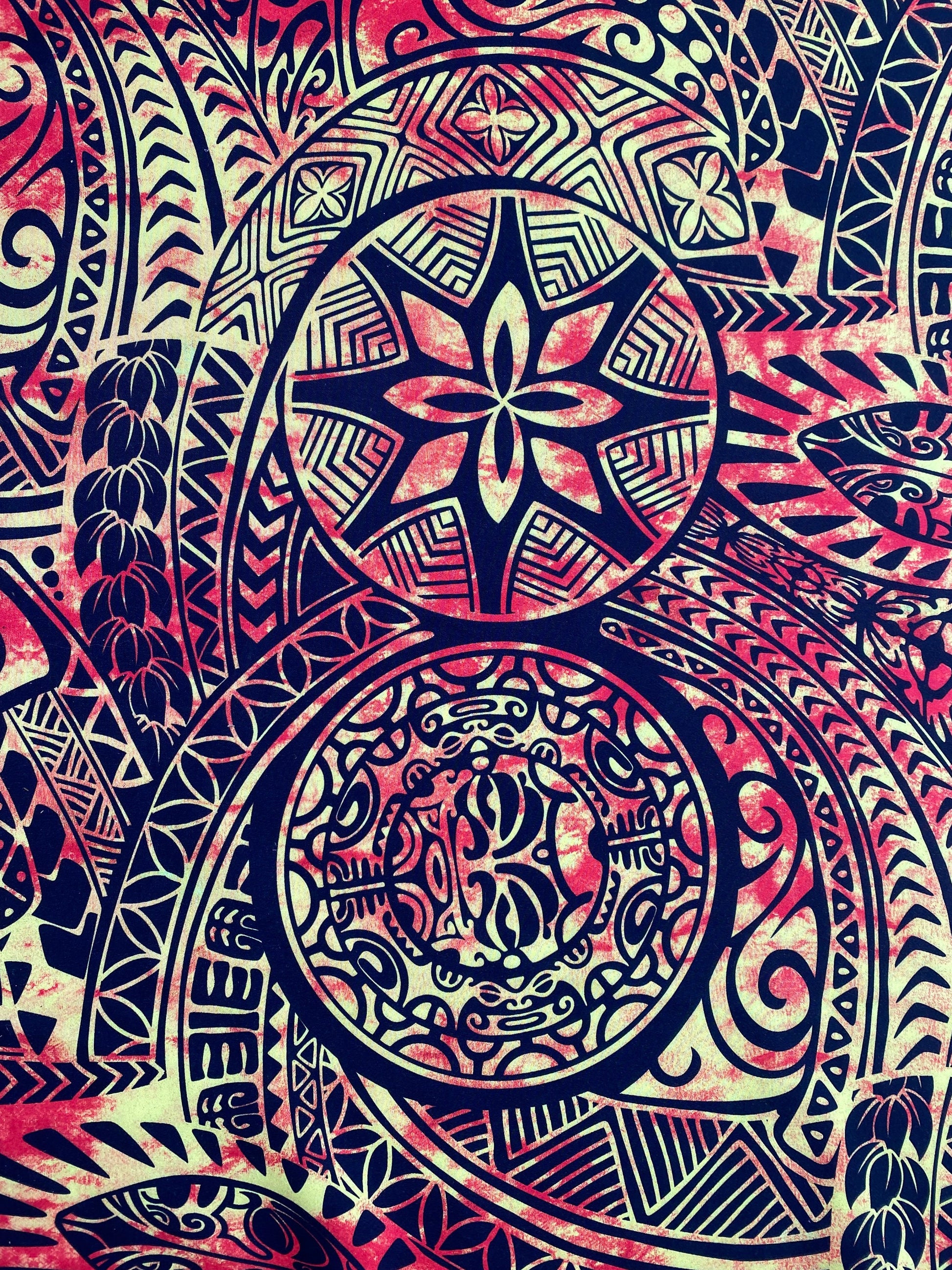 New Polynesian Samoan Print Fabric with Tribal Tattoo Design on Peach Skin - 58" Wide - Island Fabric - By The Yard