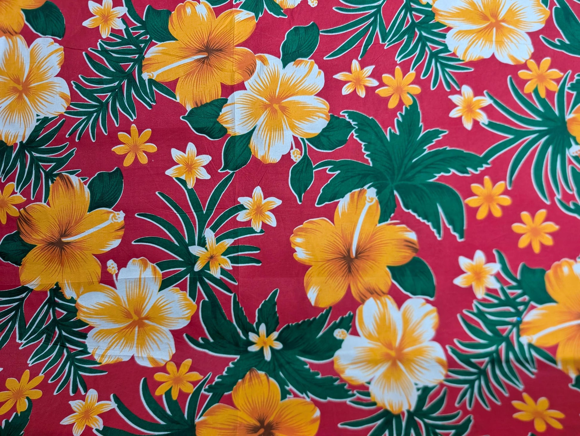 Polynesian Elegance: 36" Polyester Fabric with Poly Cotton Feel– Tropical and Floral Fusion- Vibrant Colors - Made In Thailand | Gtex Fabrics