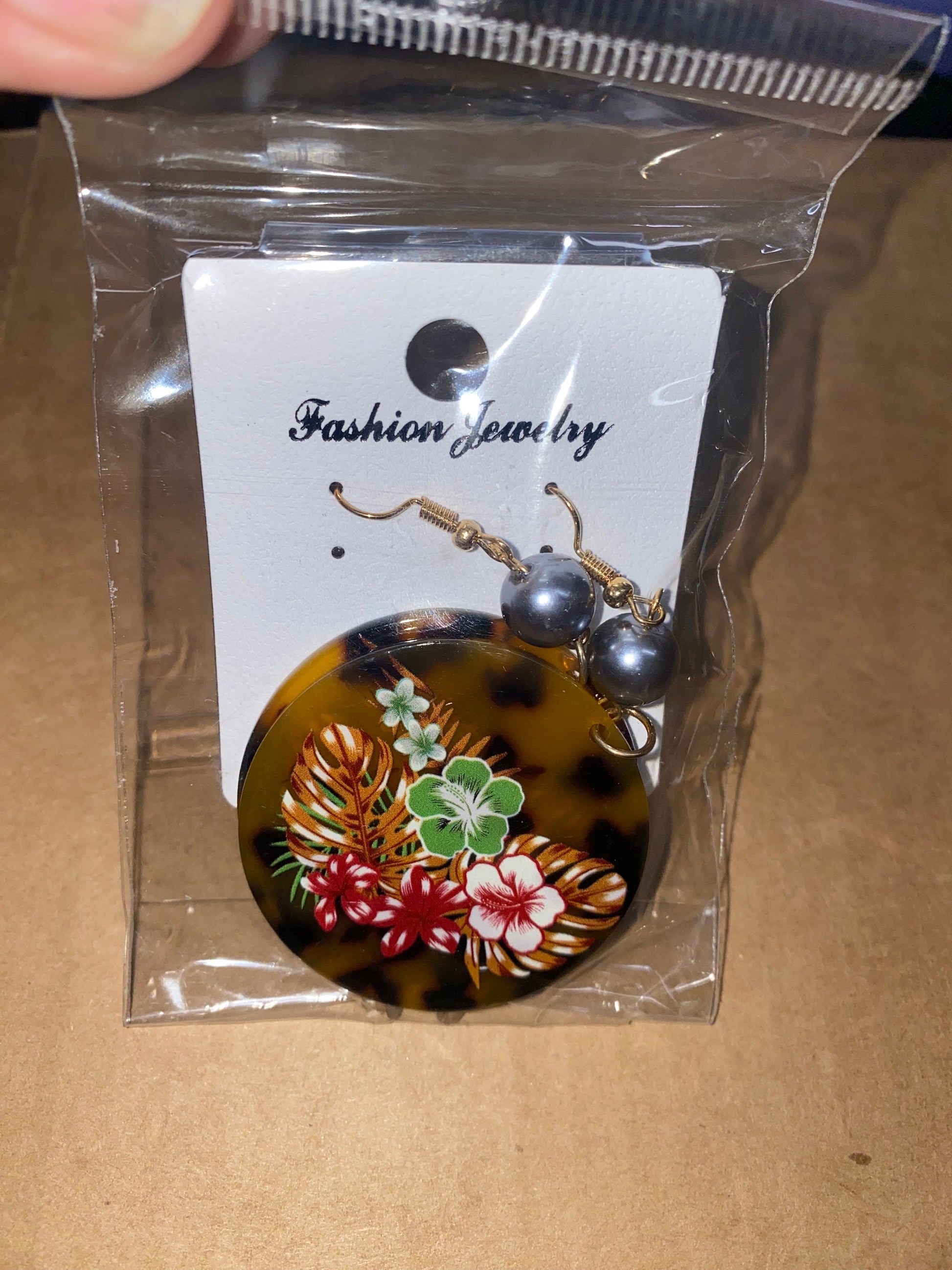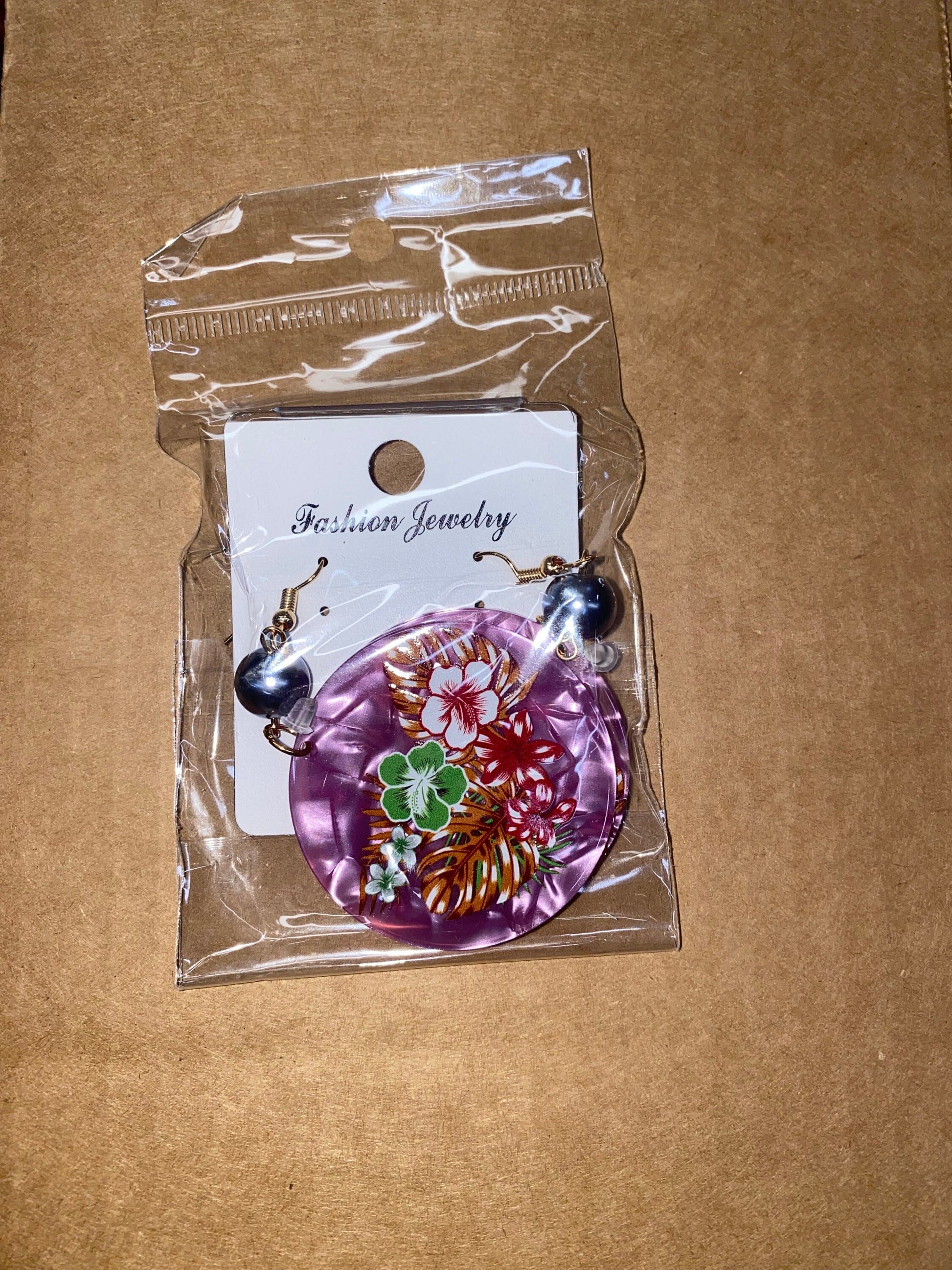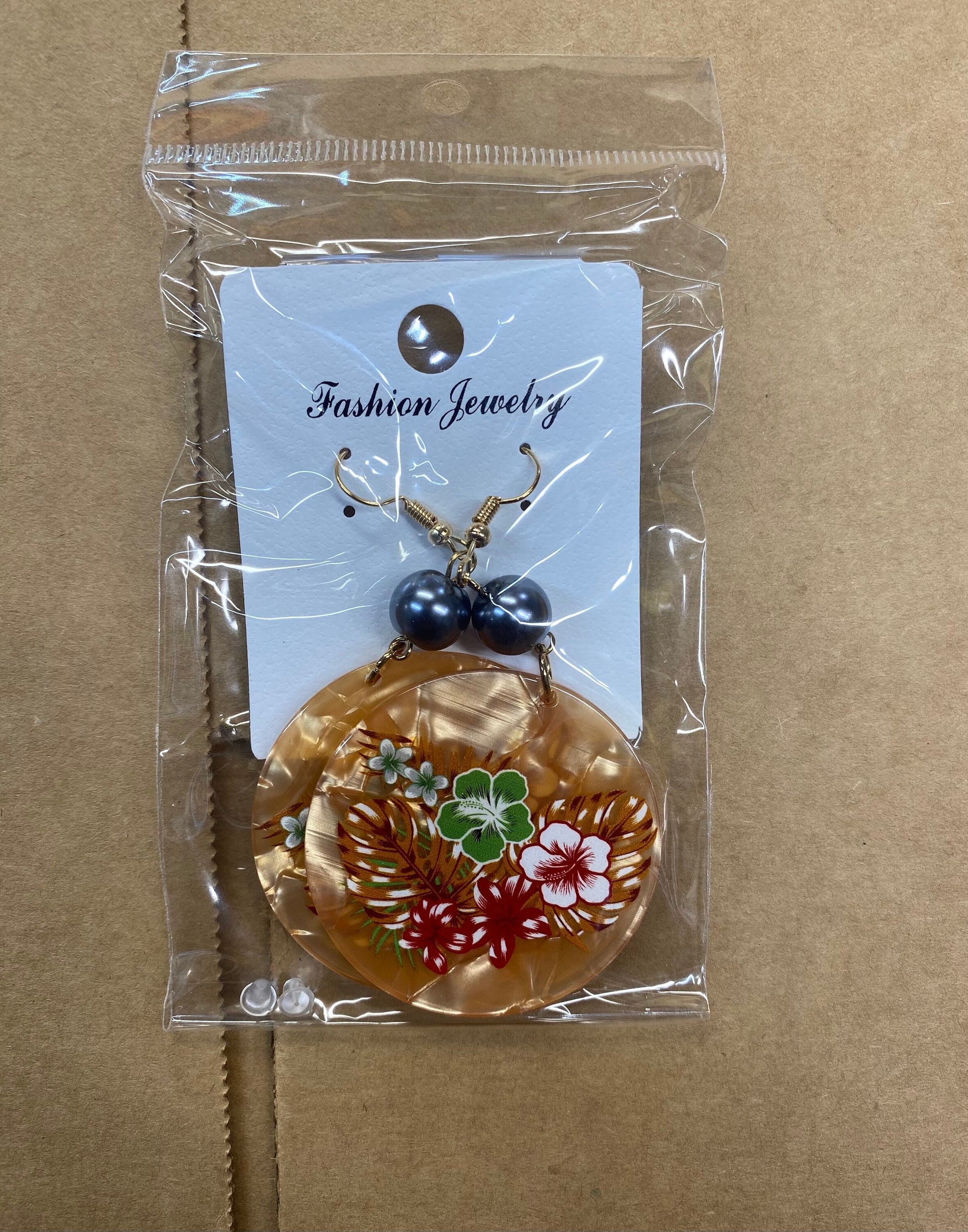 Polynesian Island Tropical Earring Set - Resin Embossed with Pearl - Design 101 | Gtex Fabrics