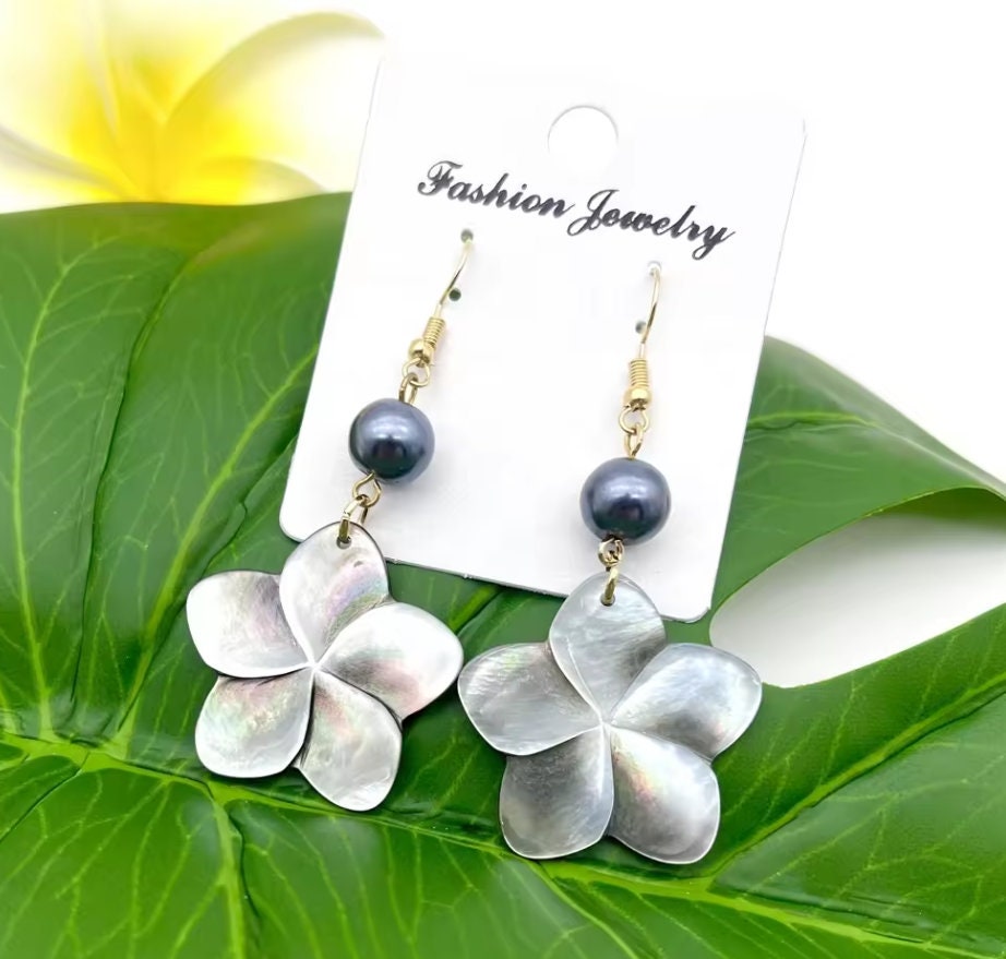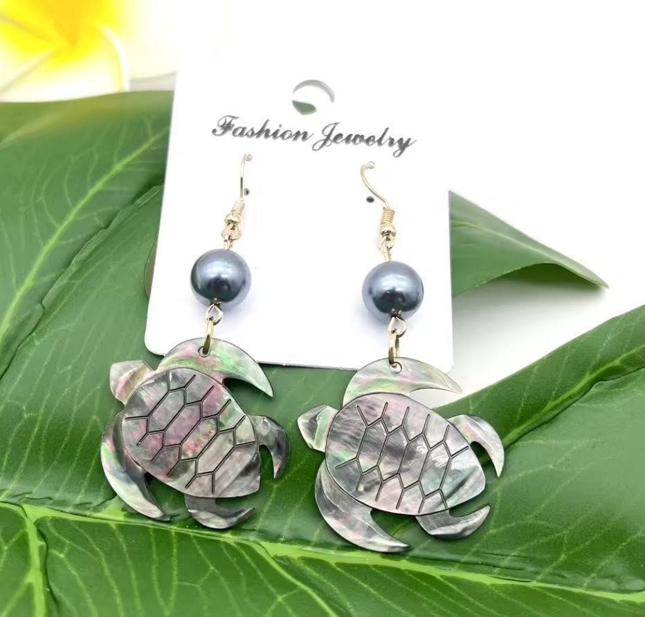 Polynesian Island Tropical Earring Set - Resin Embossed with Pearl - Design 102  | Gtex Fabrics