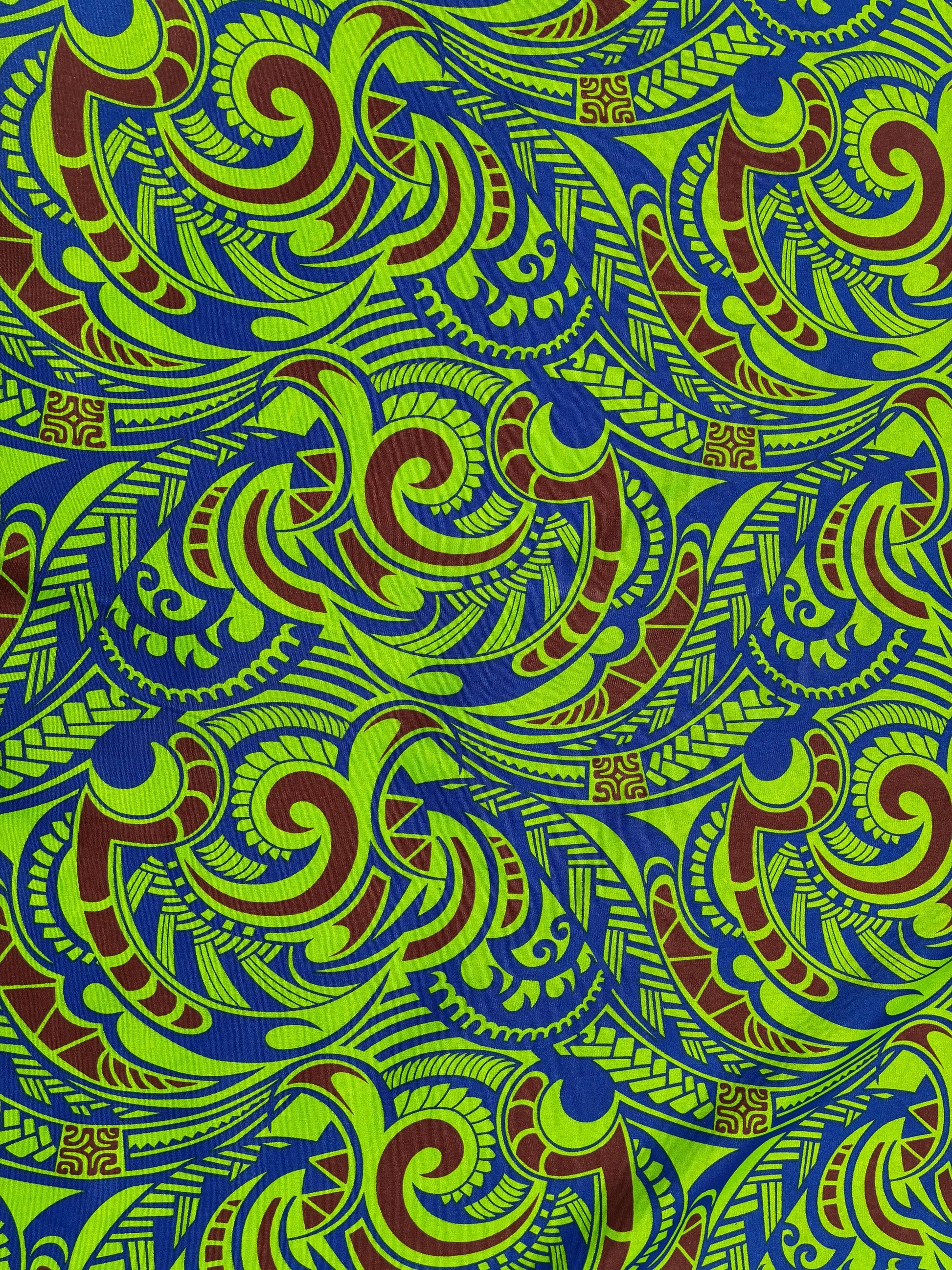 Polynesian Tribal Fabric – 45” Wide | Lightweight Soft Poly Cotton Feel | Sold by Yard or Roll | Made in Thailand | Island Design| Wholesale | Gtex Fabrics
