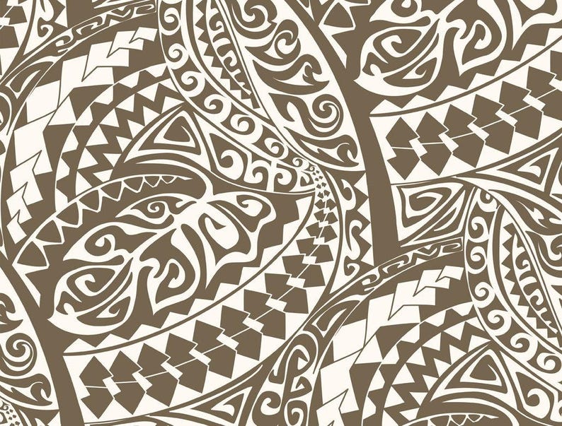 Polynesian Tribal Fabric – Beige and Brown 100% Cotton, 44” Wide Island Print by the Yard