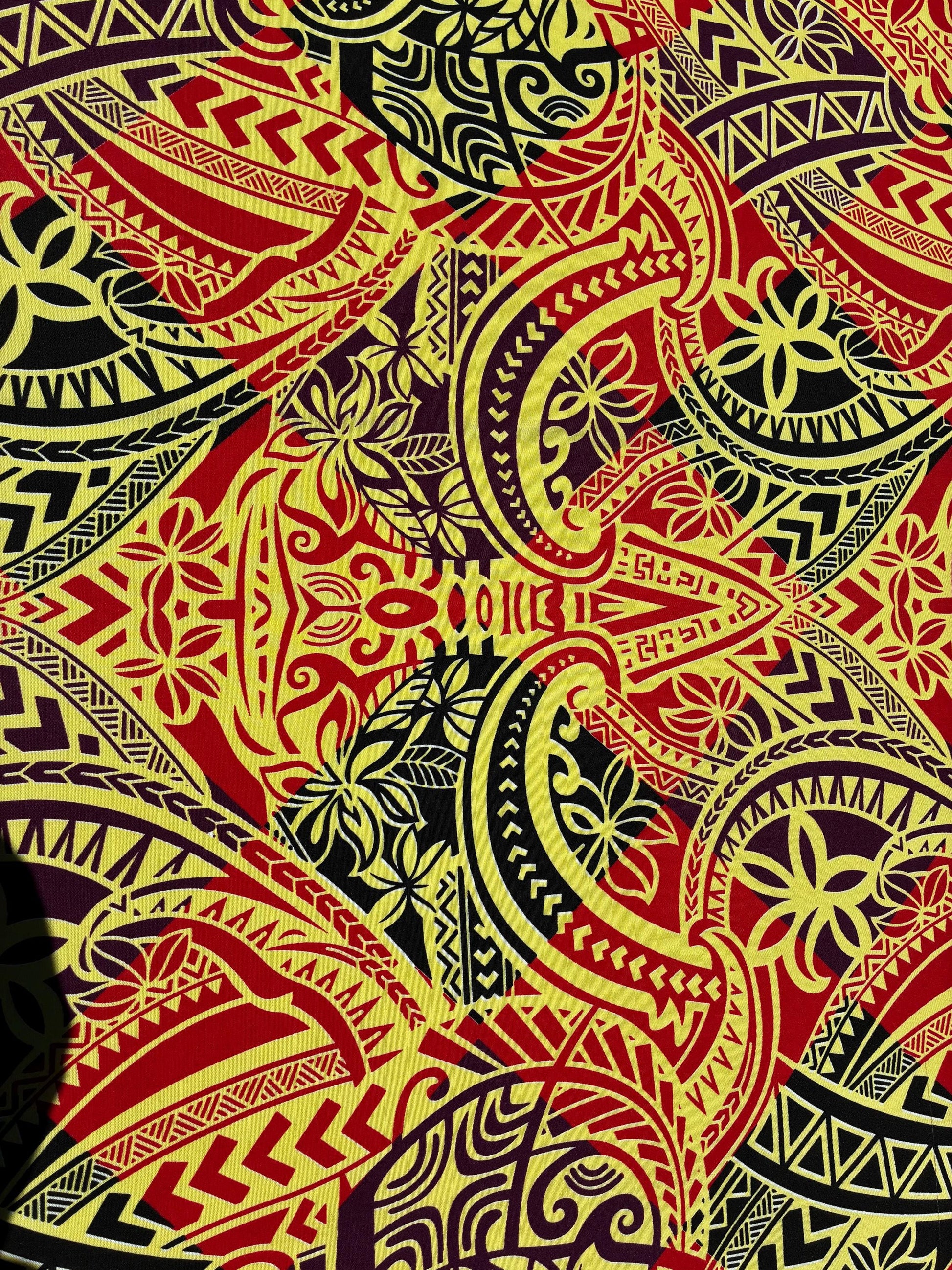 Polynesian Tribal Fabric – Island Print | 45” Wide | Lightweight Poly Cotton Feel | 100% Polyester | Sold by Yard or Roll | Gtex Fabrics