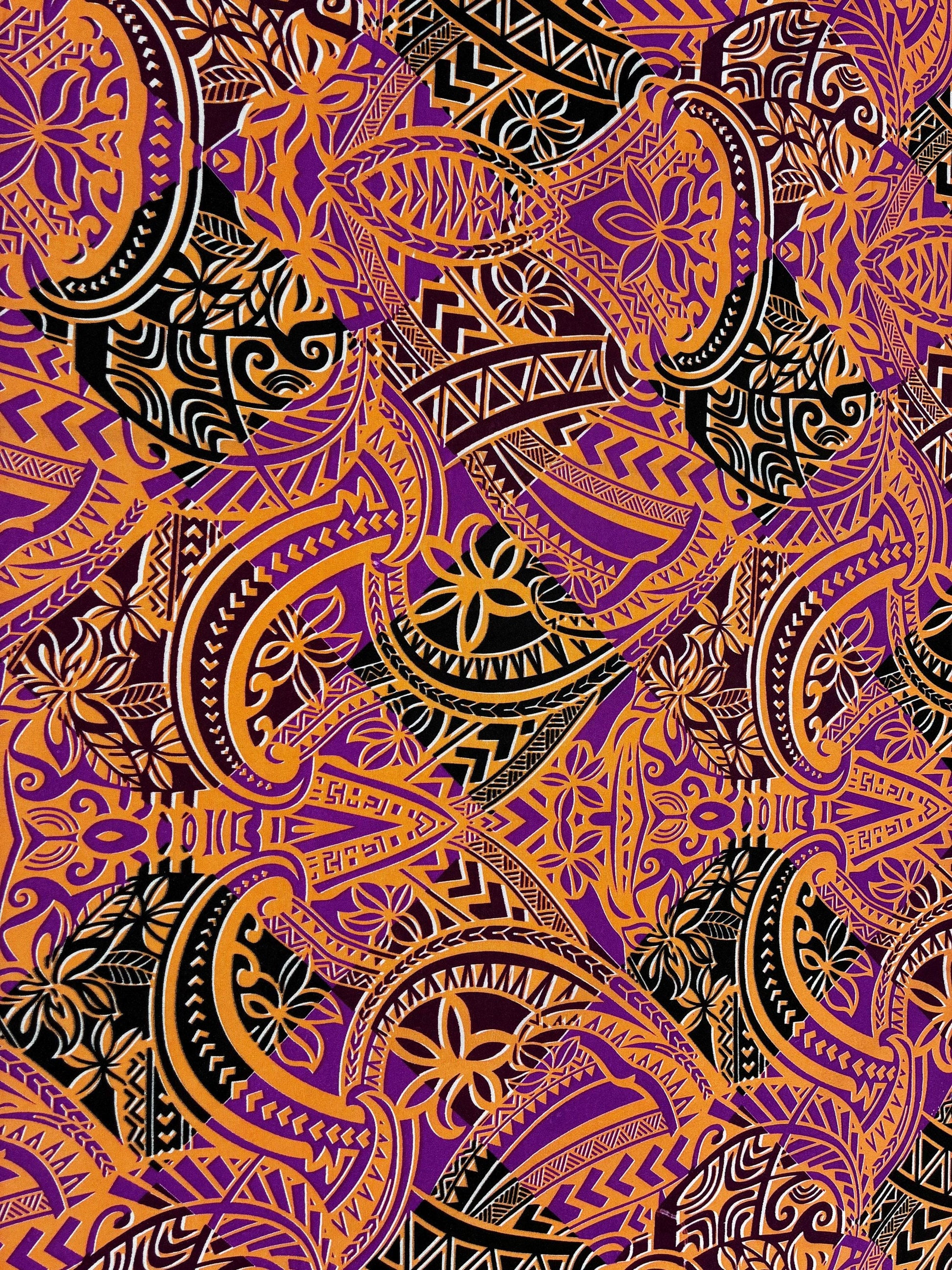 Celebrate island culture with this bold Polynesian tribal fabric, featuring traditional motifs that honor heritage and identity. Made from 100% polyester with a soft, breathable poly-cotton feel, this fabric is ideal for sewing garments, event décor, crafts, and more.