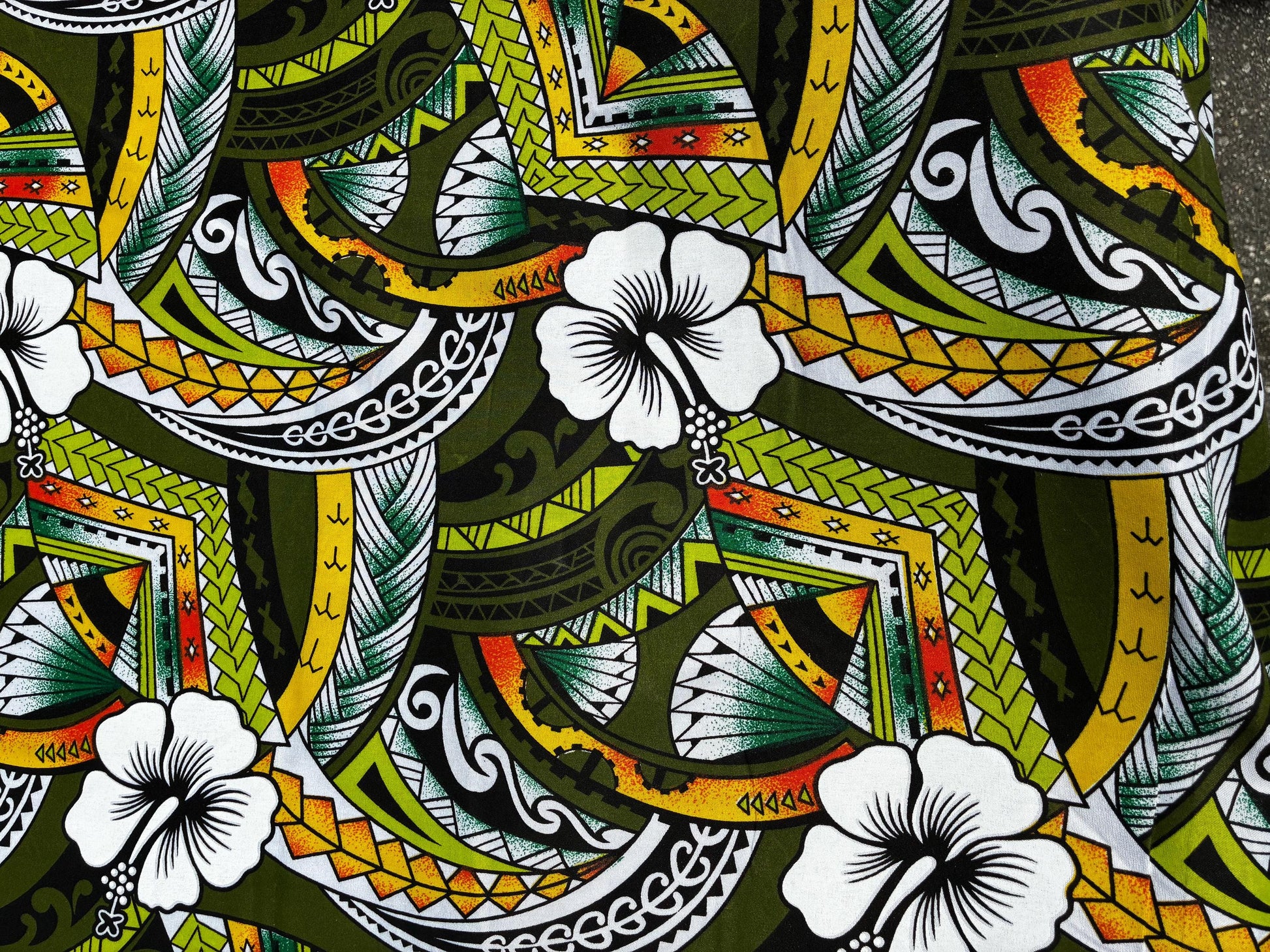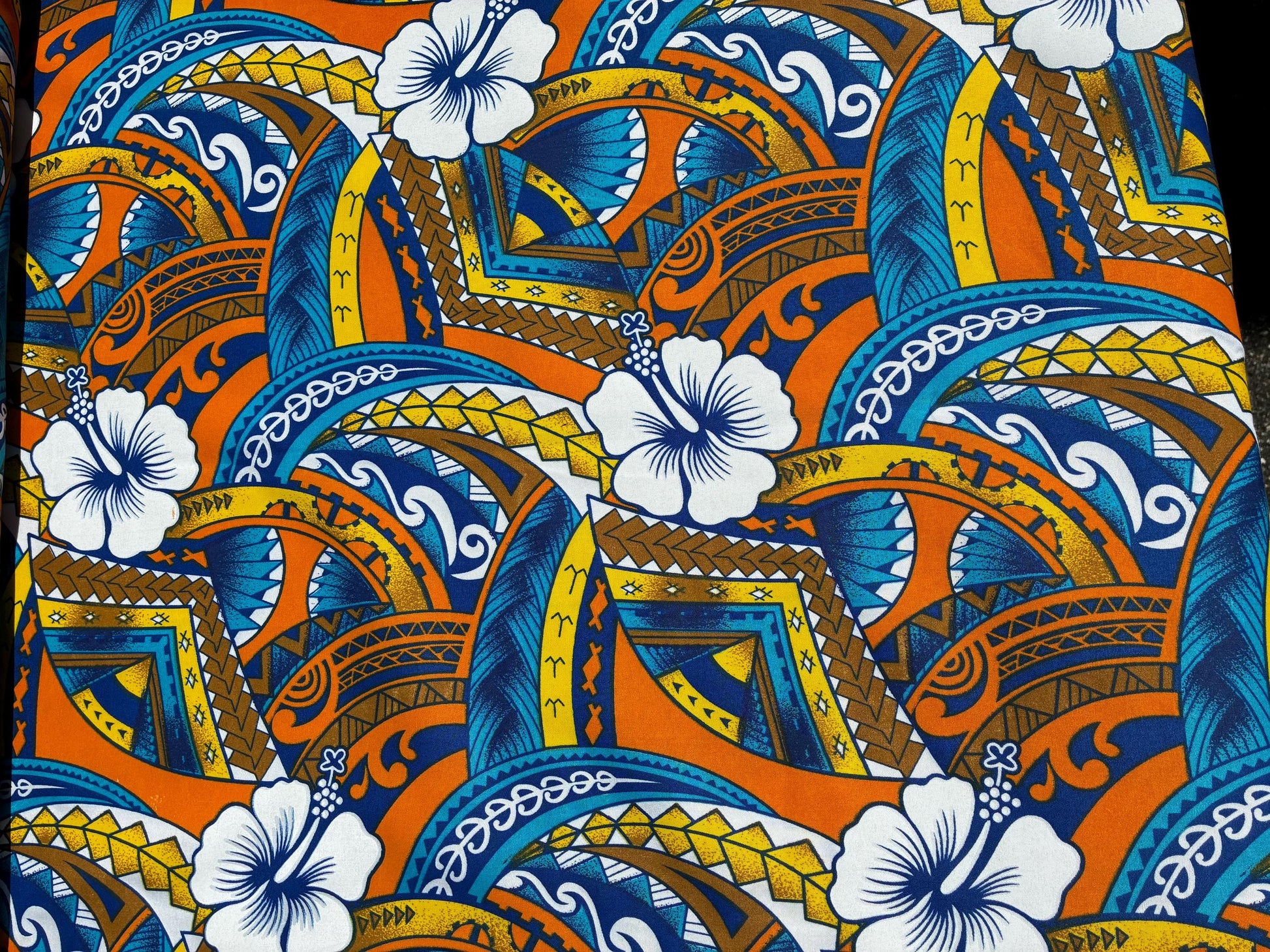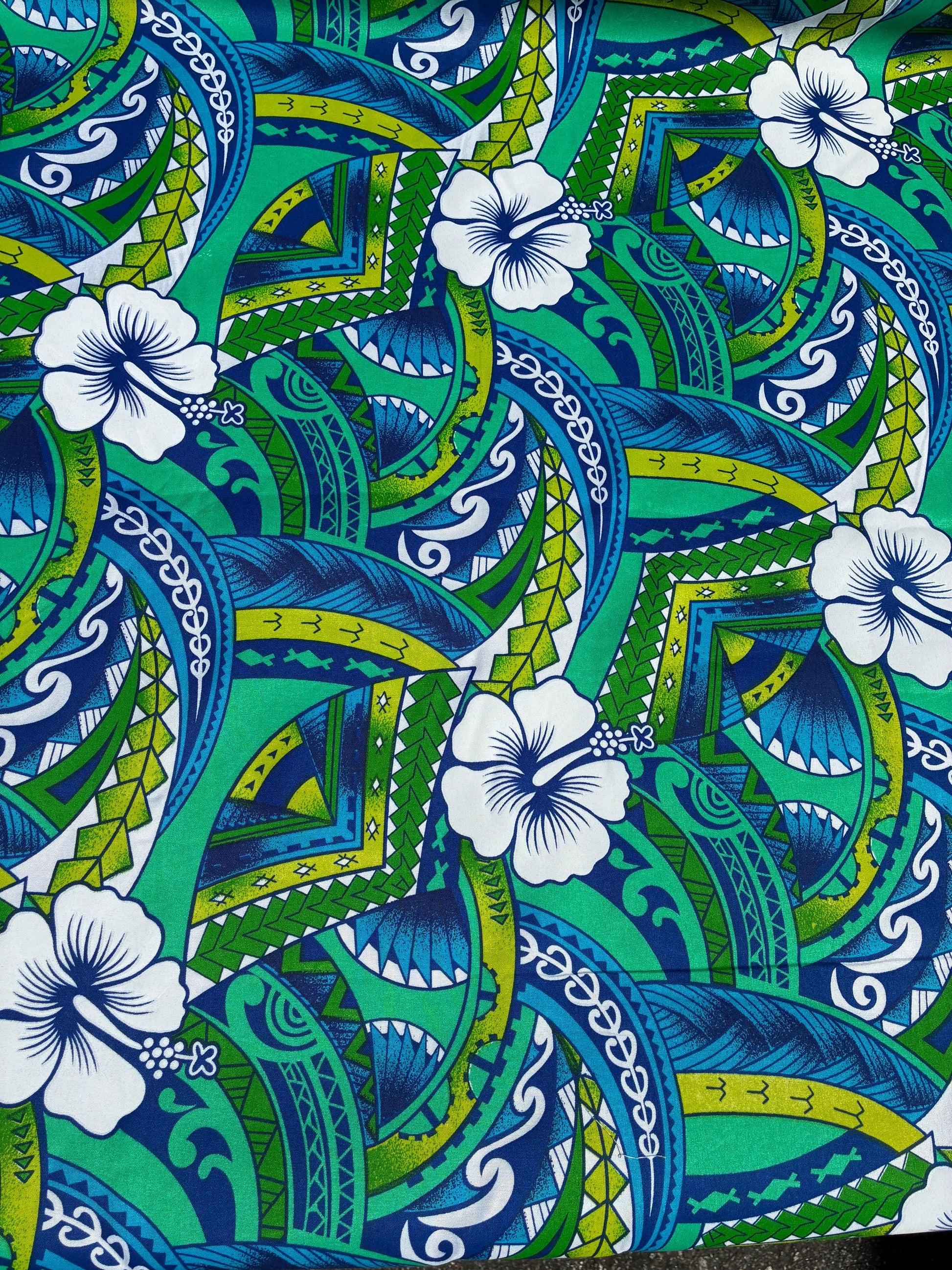 Polynesian Tribal Hibiscus Fusion – 45” Wide | Lightweight Soft Poly Cotton Feel | Sold by Yard or Roll | Island Design | Wholesale | Gtex Fabrics