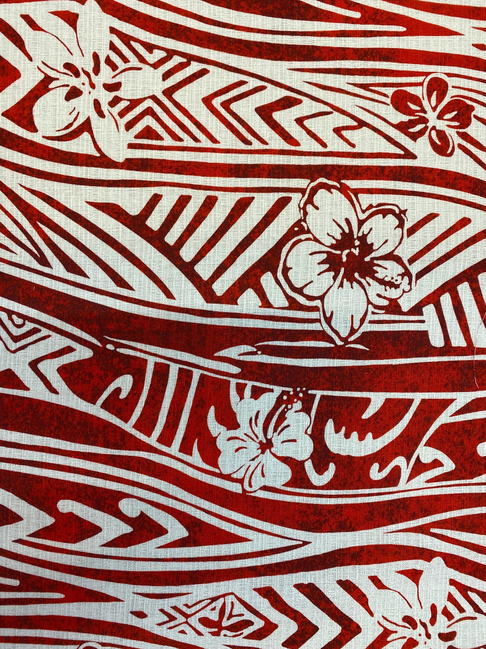 Polynesian Tribal Tattoo with Hibiscus, Doby Cloth, Lt. Bark Cloth, 100% Cotton, High Quality Rich Colors - New Design | Gtex Fabrics