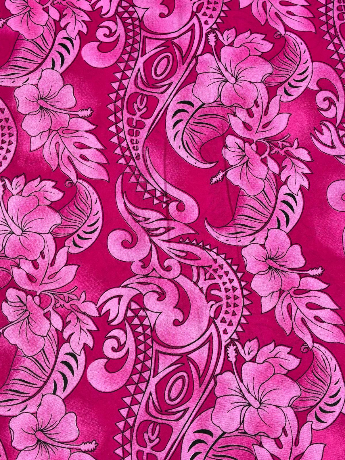 Featuring a mesmerizing fusion of tribal and floral elements, this fabric encapsulates the essence of Polynesian beauty. The intricate patterns draw inspiration from the rich cultural heritage of the islands, adding a touch of exotic elegance to your creations. The vibrant colors further enhance the visual appeal, allowing you to design garments that stand out with a tropical flair.